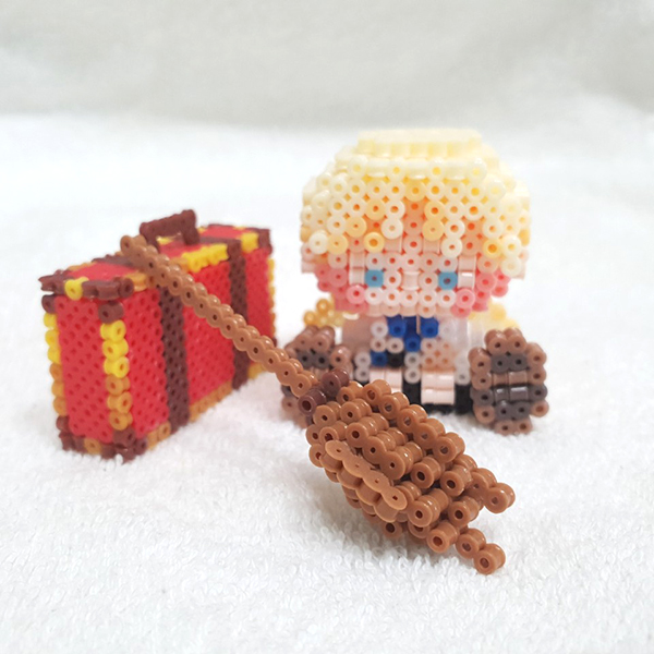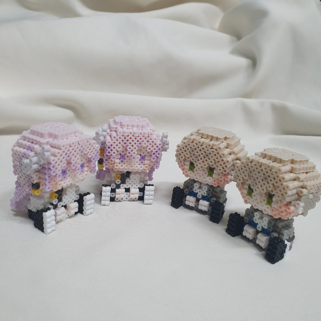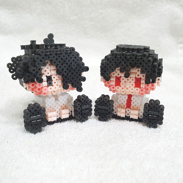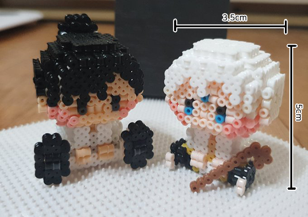 이 커미션은 2.6mm의 미니 펄러비즈를 사용해 입체 퍼즐처럼 조립하여 캐릭터의 형상을 제작합니다.
